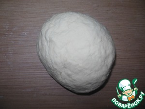 В тёплую воду, добавить соль, муку и сделать тесто. Оставить в миске, накрыть полотенцем, дать отдохнуть 5-10 минут.