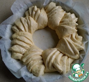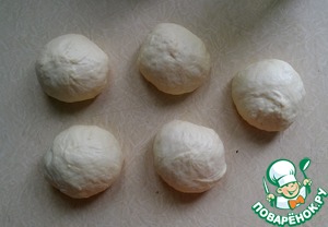 Из оставшихся 4 частей сформируйте круглые лепёшки и сложите все в "стопку" перемазывая маслом.