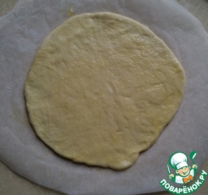 Возьмите 1 часть теста, сформируйте круглую лепешку толщиной 1 см.
