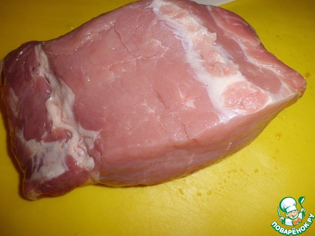 Берем корейку и разрезаем на пласты ок. 1,5 см.. -