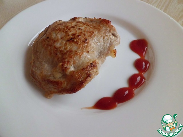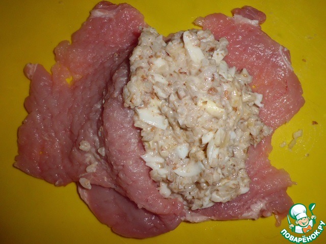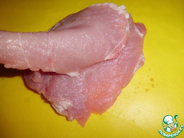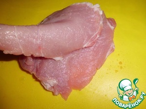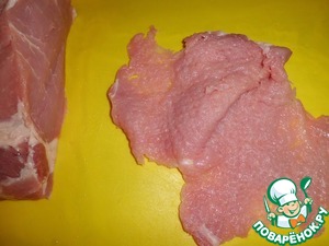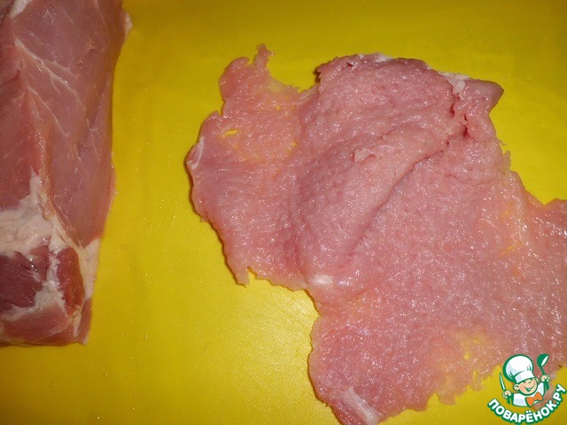 Разворачиваем "кармашки" и отбиваем. Особо усердствовать не стоит, мясо должно остаться без просветов.