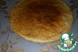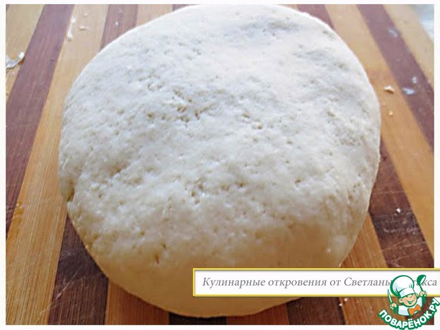 Каждую часть прижать ладонью и затем раскатать не очень тонко. Каждый кружок примерно 12-15 см.
