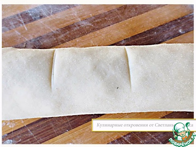 Свернуть лепешку в рулет (трубочку) и затем разрезать на 12 одинаковых частей