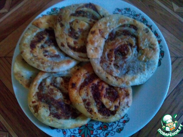 Очень жирные лепешки за счет того, что долго готовятся. Они вобрали в себя все масло со сковороды. И за счет скрученности не все тесто пропекается хорошо.