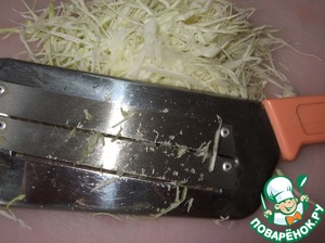 Качан разрезать пополам и нашинковать. Специальный нож облегчает и ускоряет работу.
