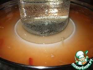 Накрыть тарелкой и сверху поставить гнет - банку или кастрюлю с водой. Ее количество легко регулировать. На фото - гнет тяжеловат.