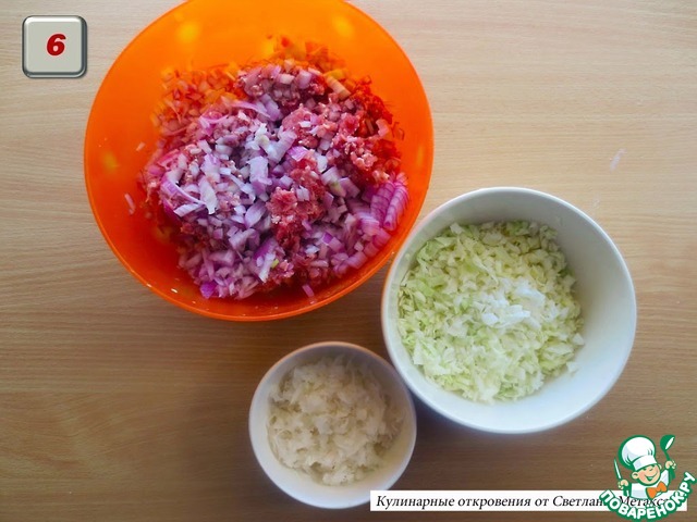 Лук, капусту мелко нарезать.