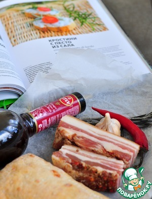КРОСТИНИ С ПЕСТО ИЗ САЛА (CROSTINI CON PESTO DI LARDO) - рецепт из книги Эллы Мартино. Очень вкусная и интересная намазка из сала. Отлично сочетается с первыми блюдами а так же хороша как самостоятельная закуска.