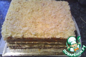 Зато было много молока))) Пришлось экспериментировать: сварила заварной крем и промазала им коржи.