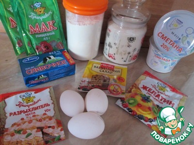 Ингредиенты для «Маковый пирог со сметанной заливкой»: