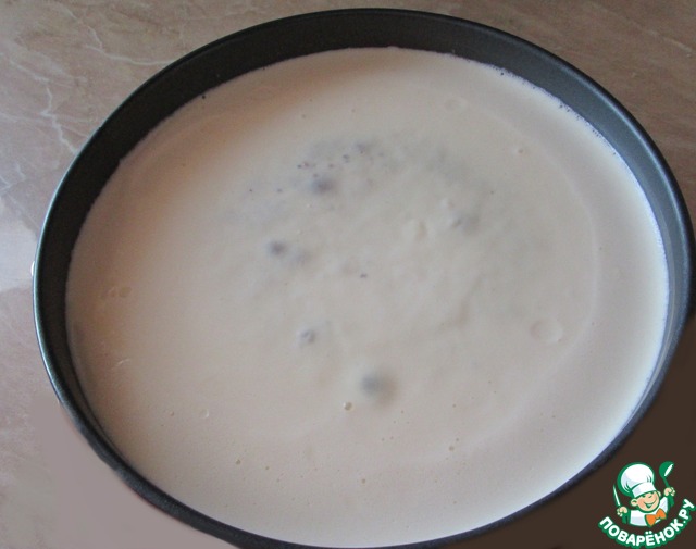 Заливаем заливкой и убираем в холодильник застывать - часов на 6. Я оставляла на ночь.
