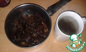 У фиников вытащить косточки и залить 0.5 стакана горячей воды. Изюм также залить горячей водой. Оставить на 10-15 минут
