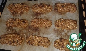 Сформировать руками батончики, выложить на застеленный пергаментом противень и запекать 10-15 минут при 175 градусах