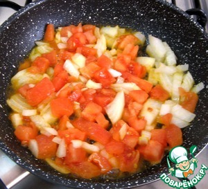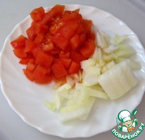 Мелко нарезать лук и очищенный помидор.