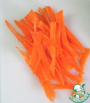 • Морковь очистить и нарезать тонко, или натереть на терке для корейской моркови.