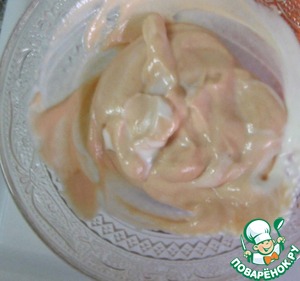 • Майонез смешать с кетчупом, добавить перец.