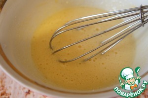 Готовим заварной крем. Кокосовую стружку я запарила частью горячего молока. Остальное молоко греется в кастрюльке на плите, до кипения не доводить. Яйцо, сахар, муку (я еще всегда добавляю щепотку соли, чтобы не было пресно) смешиваем венчиков в однородную массу.