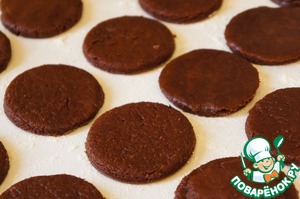 Достаем тесто, раскатываем на муке пласт толщиной 7-10мм. Вырезаем стаканом печеньки. У меня получилось 20шт. Выкладываем на противень, присыпанный мукой. Ставим в разогретую духовку. С градусами и временем я не советчик (моей лет сто) ориентируйтесь по своей духовке. Печенье должно стать пухленьким, и упругим при нажатии пальцем, не пересушите. Осторожно! Умопомрачительный шоколадный запах при выпечке! =)