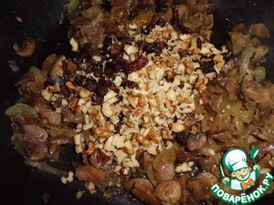 Добавить орехи и изюм, мелконарезанные. Перемешать и сразу выключить.
