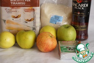 Приготовим продукты. Яблоки лучше брать крупные. Вместо рома можно использовать коньяк, бренди, крепкий ликер. Сахар я уменьшила от исходного рецепта, кто любит послаще, увеличивайте вдвое.