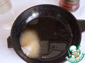 В любой широкой посуде смешать 1 ст. ложку сахара, 75 мл. рома, 200 мл. воды и проварить сироп минуты 2-3, слегка остудить.