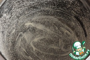 Включить духовку на разогрев до 200 градусов. Форму для выпечки диаметром 16-18 см., как следует смазать маслом и присыпать сахаром густо.