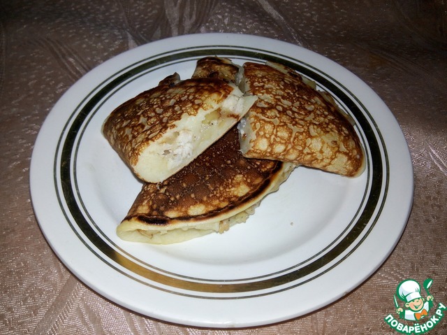 Сворачиваем блинчик пополам. Получаем полумесяц.