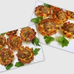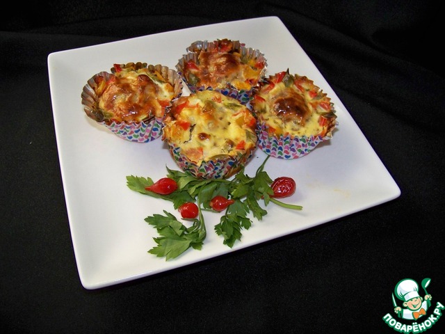 Перец нарезать маленькими кубиками, подготовить формочки для кексов. В каждую формочку положить по одному шарику, а по краям посыпать сладким перцем.