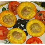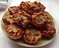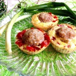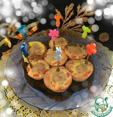 Сделать заливку: три яйца смешать с тремя ложками сметаны, чуть посолить. ( заливки можно сделать больше, этого количества у меня хватает формочек на 8..) ( у всех размеры форм разные)