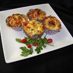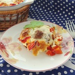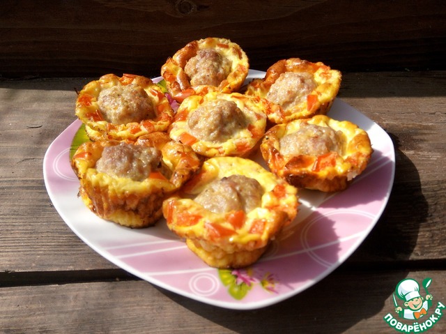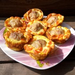 Залить каждое гнездышко яично-сметанной смесью. Разогреть духовку, 190- 200% и поставить выпекать на 20- 25 минут.