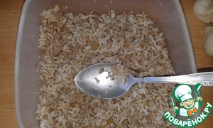• Смешать рис, печень и лук, добавить кунжут