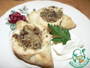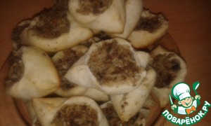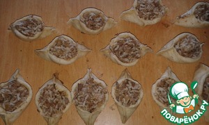 • Раскатать лепешки, положить начинку и сделать расстегаи