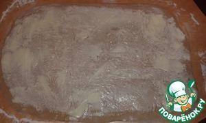 Разрезать острым ножом на 12 частей и уложить на расстоянии друг от друга в форму, смазанную растительным маслом