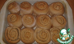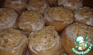Готовые горячие булочки, помазать кисточкой глазурью и посыпать орешками. Приятного аппетита!