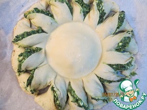 На греческом языке пирог со шпинатом называется σπ αν ακ οπ ιτ α (спанакопита). Часто пеку пироги со шпинатом из различных видов слоеного теста и не только. Форма также бывает разной - от совершенно простой прямоугольной и круглой до более замысловатой, все зависит от настроения и времени. В начинку также использую различные продукты (сыр, сыр-фета, зелень и так далее, но в основе, конечно, красавец-шпинат. Сегодня представляю вашем вниманию пирог, по форме напоминающий подсолнух.