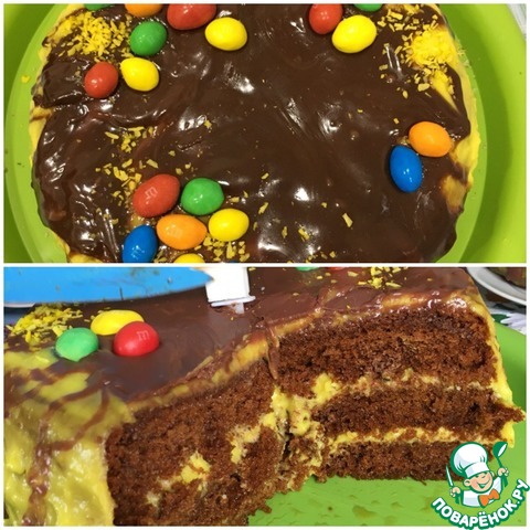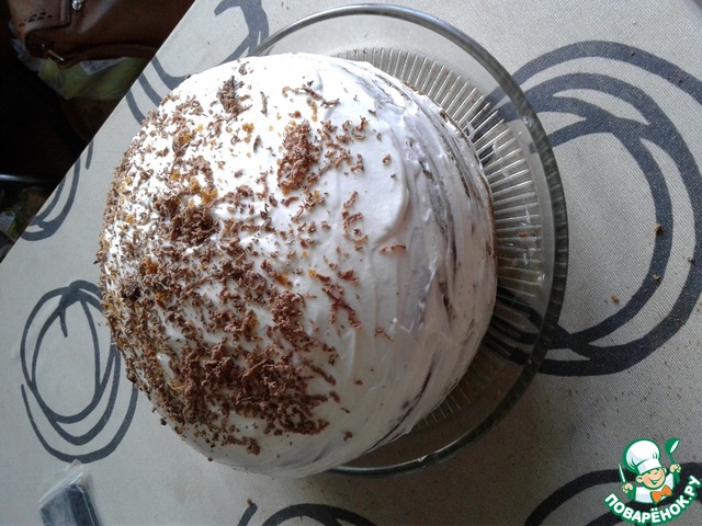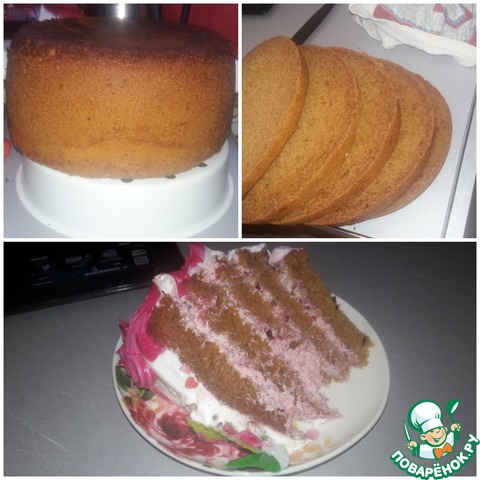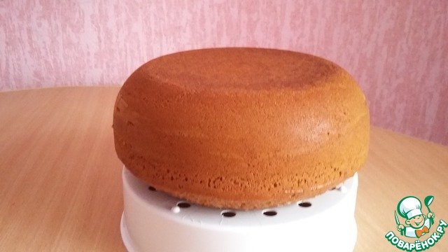 После сигнала аккуратно извлечь бисквит из чаши и остудить на решётке. Промазать любым кремом по вашему вкусу. Я разрезала его на 5 коржей, пропитала сиропом и прослоила кремом из маскарпоне и варёного сгущенного молока.