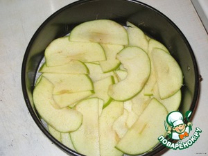На дно формы посыпать 1-2 ч.л. сахара. На сахар выложить яблоки.