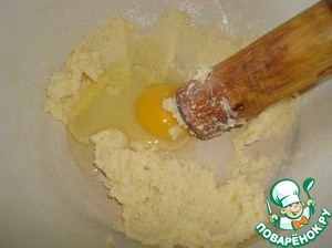 Крошку всыпать в тесто и перемешать, равномерно её распределяя. Добавить оставшуюся муку и замесить тесто.