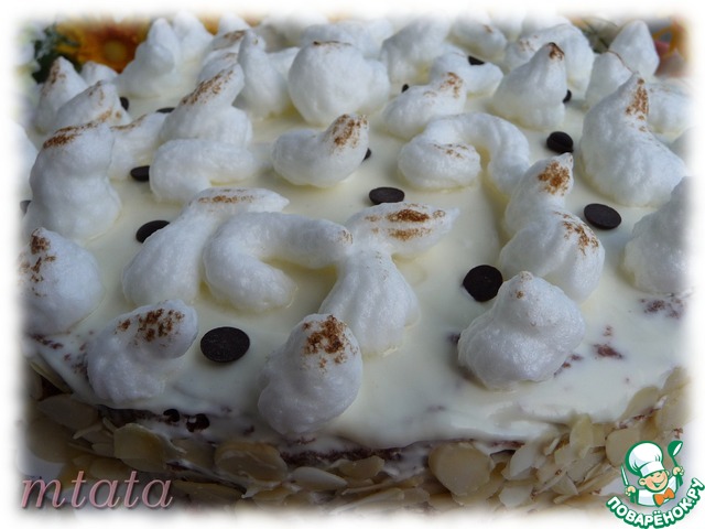 [+4]С меренгой не заморачивались, но итак получилось вкусно. Творог 10% смешала с творожной сладкой ванильной массой, также сливки нашла 33% (у нас либо 20, либо 33% ). Верх украсила орехами, но в следующий раз буду посыпать шоколадом.