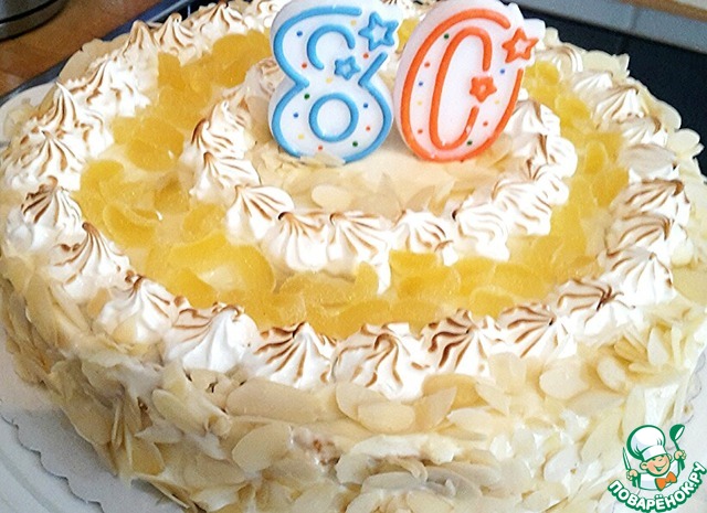 Торт можно оставить и так, но у меня же есть горелка, я прошлась ею по верху меренги. И вот такая красота! Разреза как понимаете не будет... торт ушел. Приятного вам аппетита!