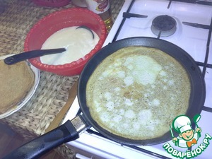 Выпекаем. Я пеку на раскаленной сковороде, блинчики получаются ажурные, тоненькие.