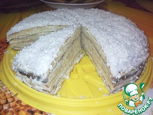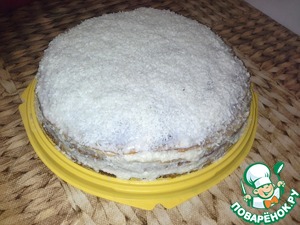 Домашние любят кокосовую стружку, на радость им и ее добавила. Оставьте тортик в холодильнике часа на 3, а лучше на ночь.
