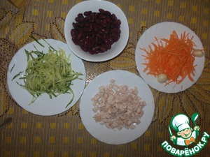 Подготовим наши ингредиенты. Морковь почистить, фасоль слить, промыть.