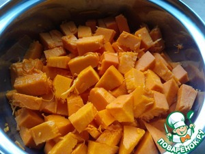 Очистить тыкву. Нарезать кубиками (произвольно).