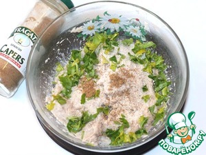 Добавить горчицу, панировочные сухари, рубленые петрушку и мяту, вустерширский соус, мелко нарезанные каперсы, томатную пасту, кумин и слегка взбитое яйцо. Хорошо перемешать