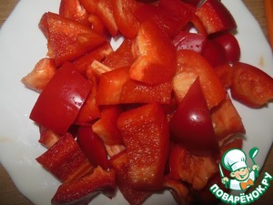 Перец крупно нарезаем.