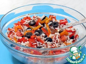 - Масло оливковое (1,5 ст.л. для обжарки перца, 2,5 ст.л. для заправки салата) — 4 ст. л.