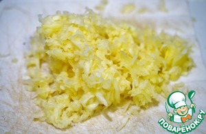 Кабачок почистить, натереть на крупной терке. Чеснок очистить и мелко нарезать.