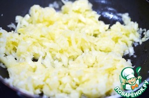 На оливковом масле на небольшом огне обжарить чеснок, добавить кабачок, посолить и готовить минут 5-7.