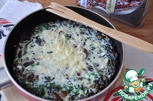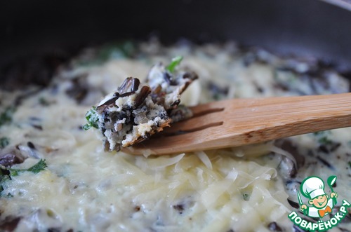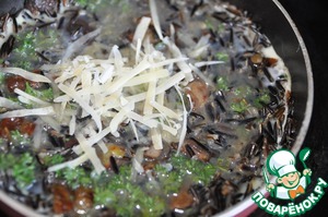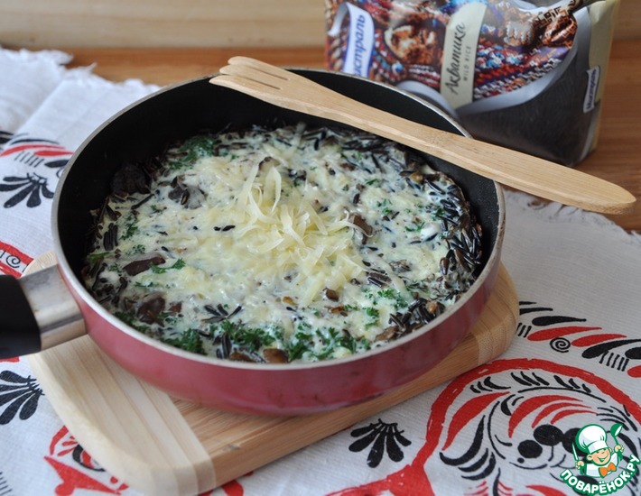 Добавляем к грибам сваренный дикий рис, перемешиваем.